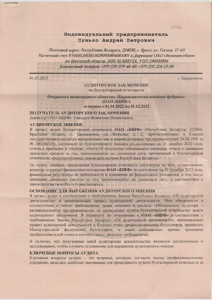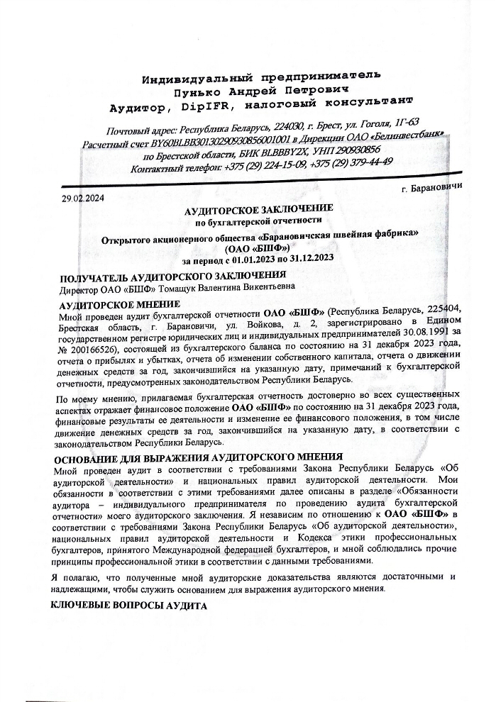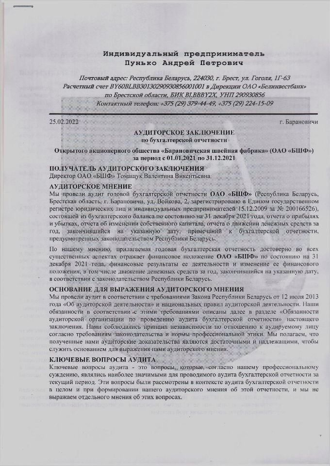 Открытое акционерное общество "Барановичская швейная фабрика"